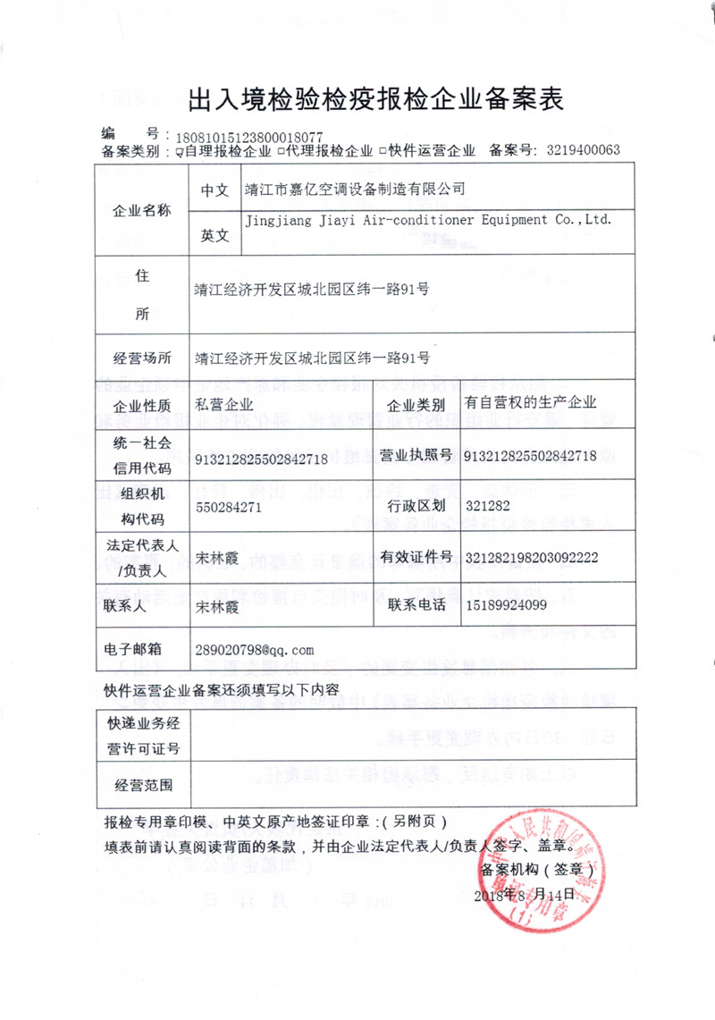 靖江市嘉億空調(diào)設備制造有限公司