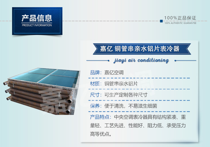 1: 表冷器匯管材料可以是鍍鋅鋼管,也可以是銅管或是不銹鋼管,表冷器翅片可以是普通鋁箔,也可是親水鋁箔;表冷器端護板可以是鍍鋅板也可以是不銹鋼板。