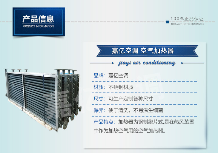 您好!歡迎來到靖江市嘉億空調(diào)設(shè)備制造有限公司官網(wǎng)! 表冷器系列 、加熱器系列 、不銹鋼蒸發(fā)器 、冷凝器 、 生產(chǎn)廠家